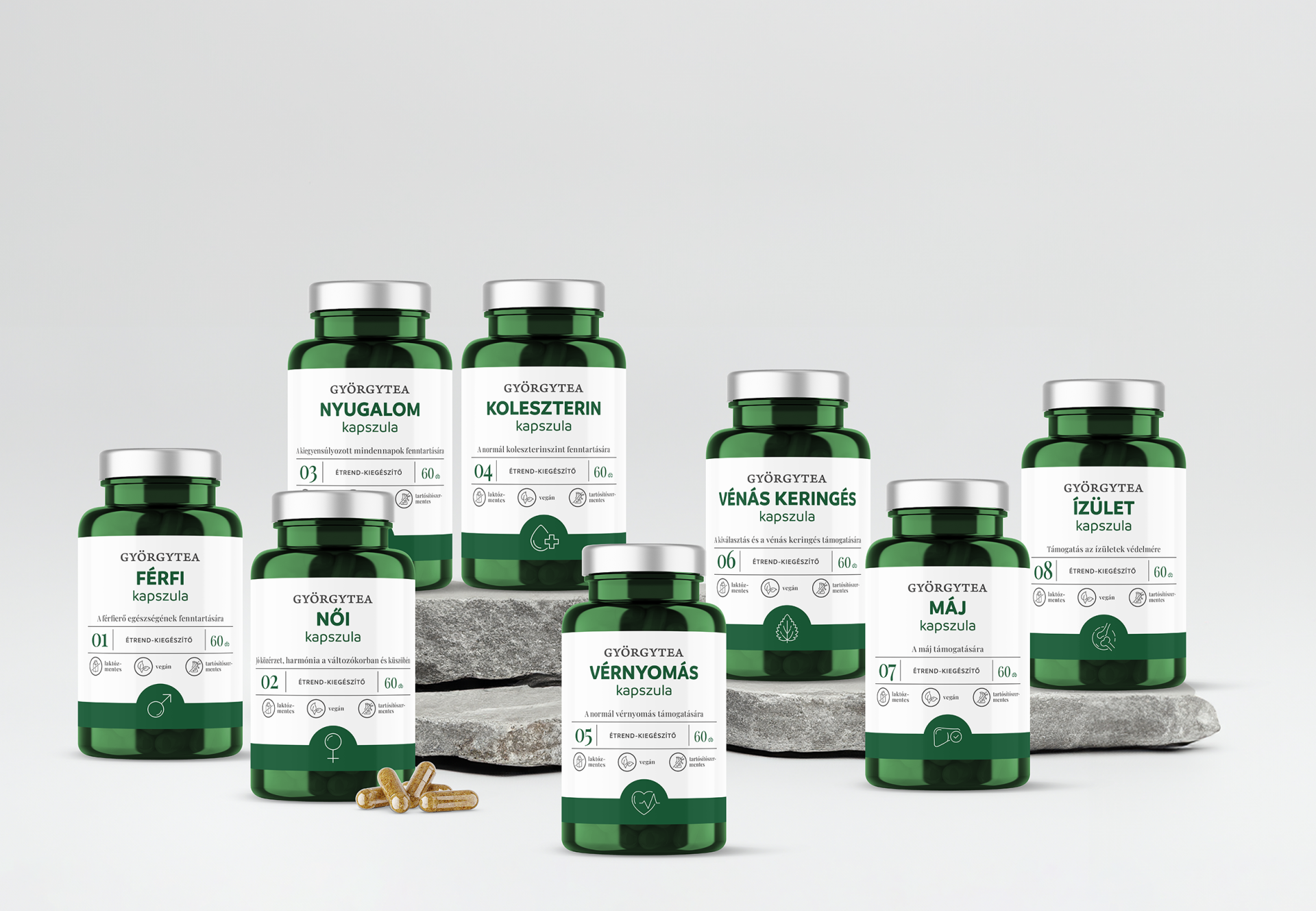 Györgytea Máj étrend-kiegészítő kapszula máriatövissel, B12-vitaminnal, gyógynövényekkel a máj támogatására. (54,83 Ft/kapszula)